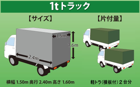 軽トラパック、1トンパックは、作業員1人でお伺いします。