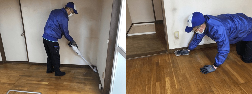 当店が片付け・掃除した後、すぐに賃貸マンション、アパート、団地の管理会社に最終確認いただけます。管理会社が最終確認して、25年間クレームは一度もありません。